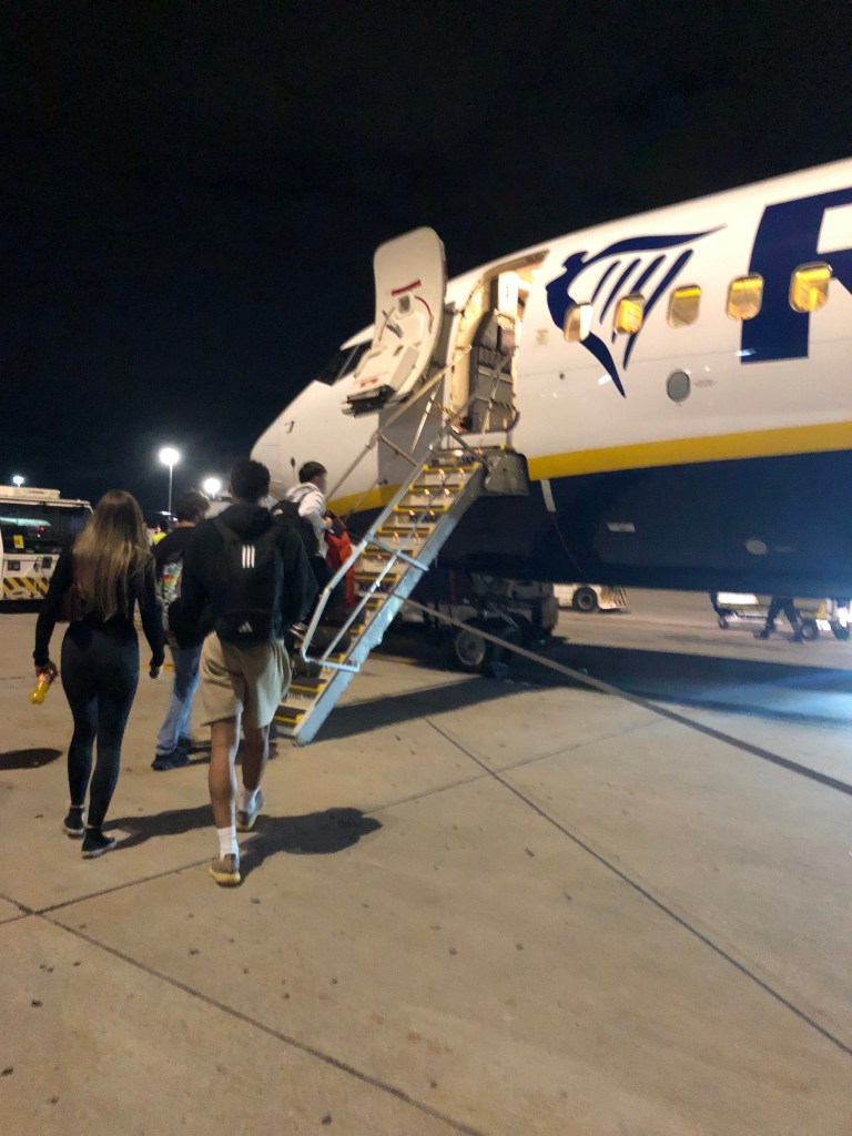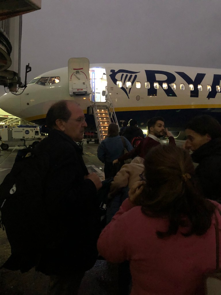 I’m in 6D, and plonk myself down with Kindle, phone and headphones in hand. If I can keep my eyes open, I’m hoping to finish my book during the next three hours and have a few good podcasts loaded up, just in case. I am soon joined by the two lads sitting in 6E and F, and I squirm a little as they loudly exchange banter with their friends a few rows back. The plane is freezing, there’s no way Ryanair are going to pay to start the engines until they have to.