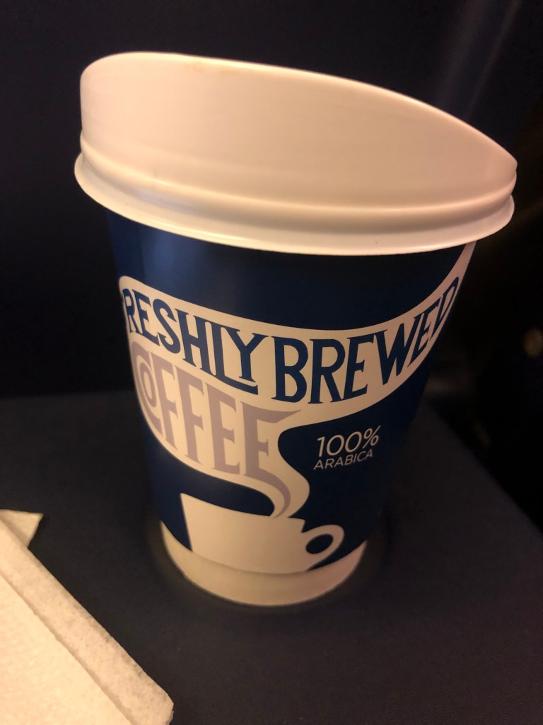We take off on time and I play about with the in-seat ordering option on the app, a clever idea that connects to the plane via Bluetooth – I couldn’t log in, and didn’t have the patience to run through the forgot-password-rigmarole, so entered as a guest. I didn’t use it this time, I think this is because I wanted my order of a large black coffee to be more anonymous and look less like showy privilege a first-in-the-queue-waiter-service would imply. I’m funny like that: as much as I want to be given special treatment to avoid the masses, I hate being seen to be given special treatment to avoid the masses. That said, I like this innovation, and resolve to get over myself and try it on the way back. The coffee is actually surprisingly good for an airline, and it was even hot!