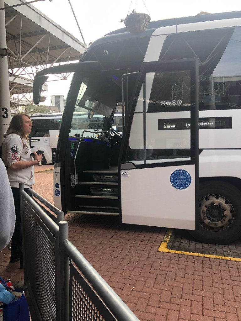 I wait for the coach, and when it’s called (perfectly on time) I am at the back of the queue because the other passengers had already spotted its arrival from Birmingham and were lining up as the driver and passengers took a break. Silly me, amateur move.