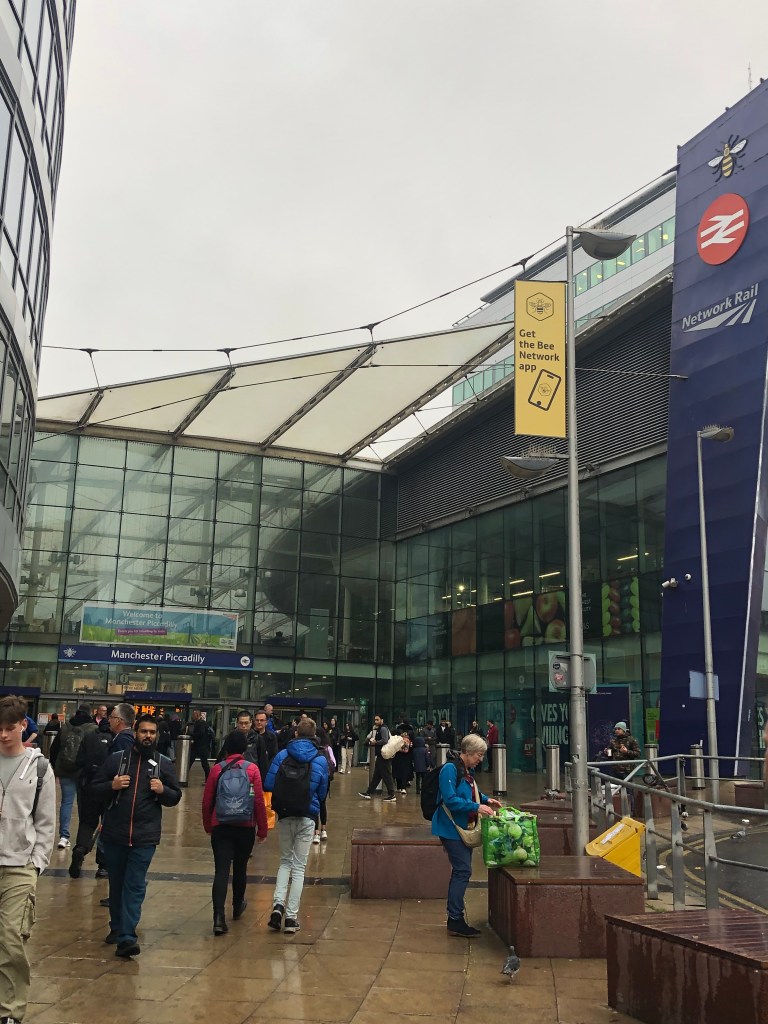 My legs need the exercise far more than they need saving, and so I head out into the drizzle and walk through the city centre to the main station: Piccadilly.