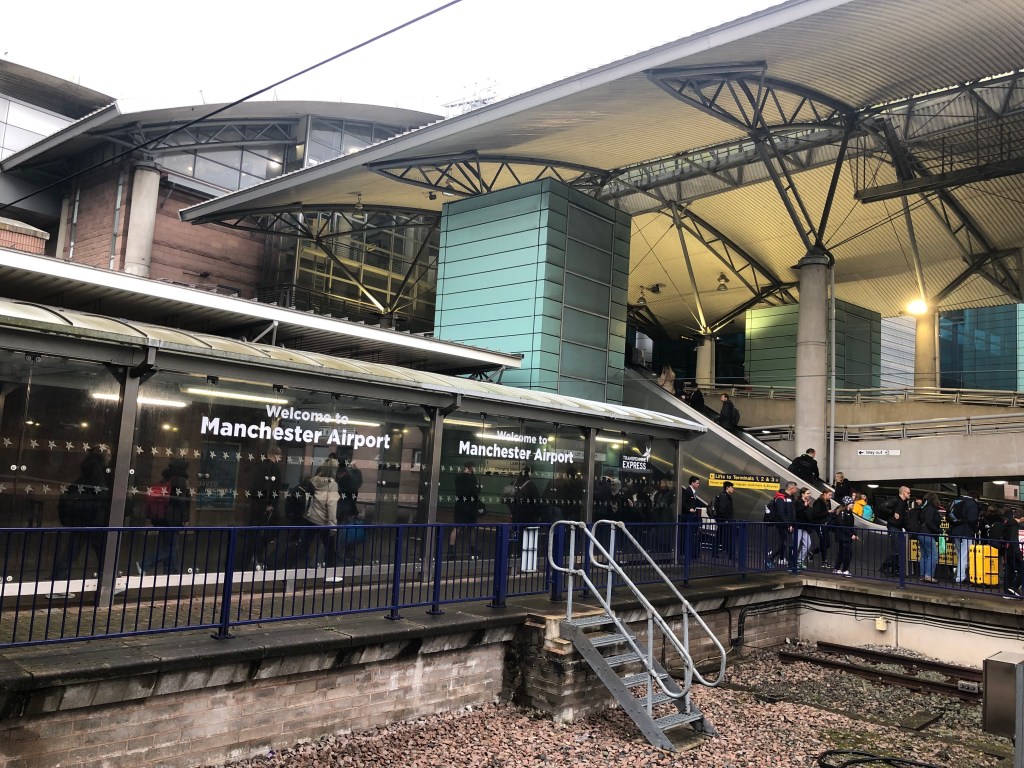 The train is on time, it’s come from Salford Crescent, so it’s probably the one I’d have caught had I kept on my Calder Valley train instead of crossing the centre on foot. It’s busy and functional, like a bus, but it’s efficient, and it’s not long before we’re slowing into the airport’s decent little station. I give a little nod of approval as I get off and look around. I like this station, and appreciate it as a nice bit of joined-up transport infrastructure.