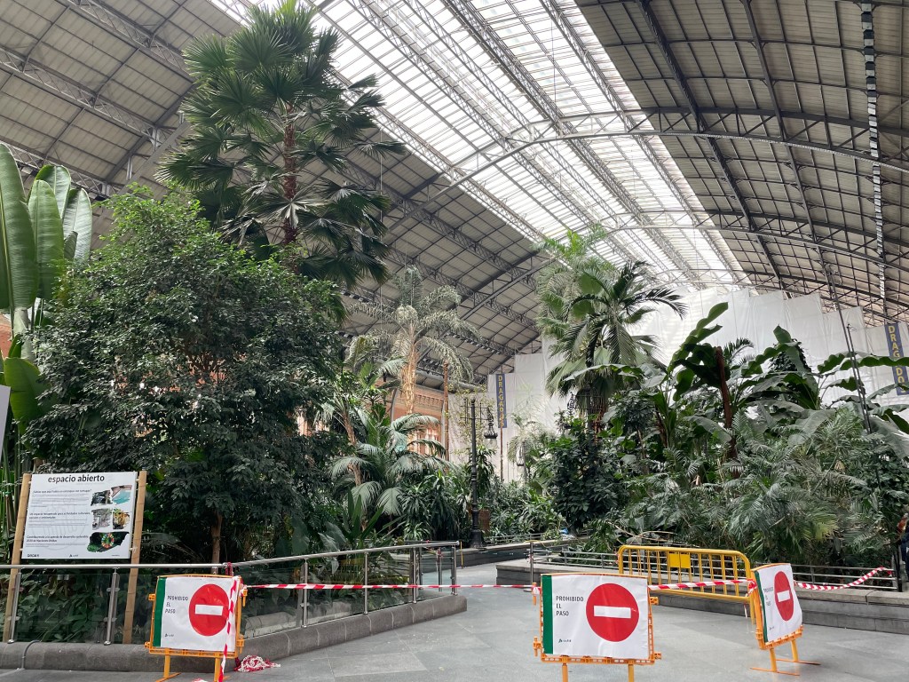 We agree to meet at the indoor gardens in Atocha – unfortunately they’re inaccessible to the public at the moment, roped off with “no entry” signs, the tranquil ambience of this lovely green space marred by the cacophony of pneumatic drills rattling away in the background.