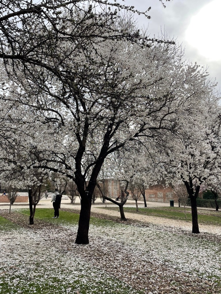 We stay at the quieter southern end, and end up in the rose garden, with rows of beautiful blossom trees. It’s early for blossom, but this winter has been unseasonably warm again. It’s almost as if the climate is changing, which, if so, you’d think someone would mention so we could all work together in harmony to do something about it.