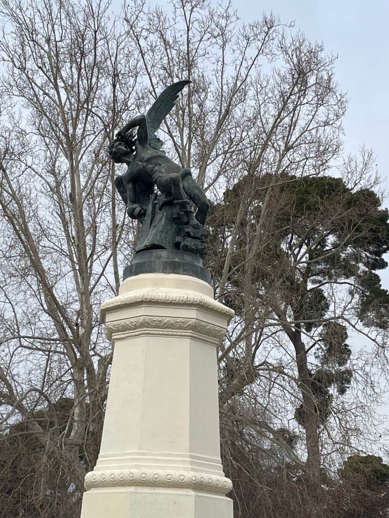 We carry on up to the statue of the Fallen Angel, supposedly the only proper statue of the devil in the world. It sits at exactly 666 metres above sea level which makes it a surprisingly amusing addition to a royal park for a catholic country. The prize-winning statue, inspired by Milton’s Paradise Lost, was created for the National Fine Arts Exhibition in 1877 by Ricardo Bellver, and has been in the park since 1922.