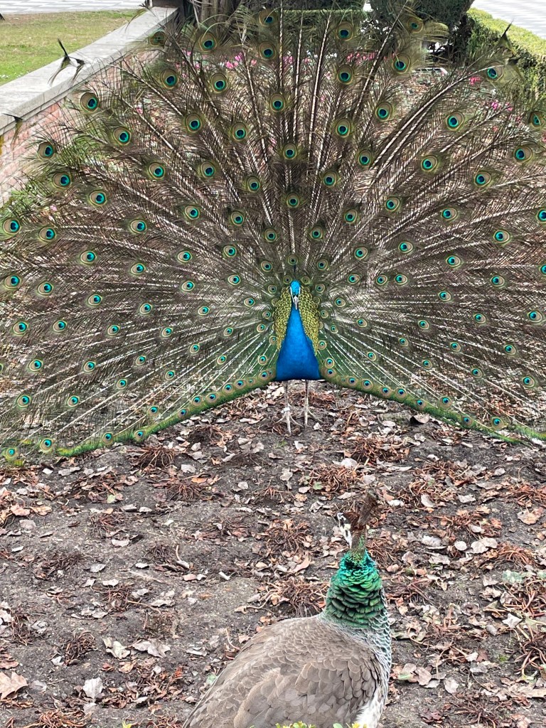 There are peacocks everywhere, some displaying their fancy tails whenever they spot a peahen. It doesn’t seem at all embarrassed to be caught in the act of so obviously displaying, I’d be beet red if someone spotted my clunky attempts to flirt! The target peahen is completely disinterested, and I nod a little empathy in his direction … I know the feeling fella.