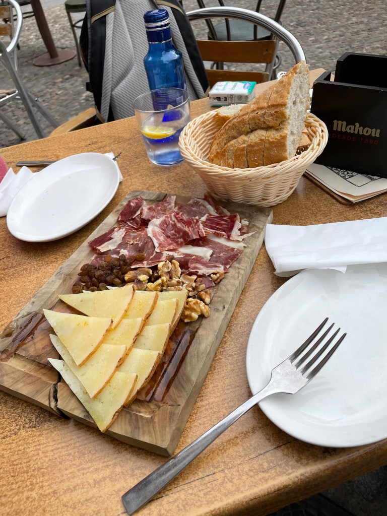 The food arrives, and I admit I sometimes question why some restaurant food is just them opening a packet and putting it on a plate, but I don’t like to be a total grump, and so let’s focus on the positive: it is a very tasty cured Manchego cheese with some lovely cuts of Iberian ham, scattered with walnuts and raisins, and with a drizzle of olive oil, so it is still a jolly decent feed … and okay, yes, I do look a bit enviously at the next table where they’d ordered fried chicken fingers, but I am a sophisticated grown-up now … so let’s just appreciate this posh platter.