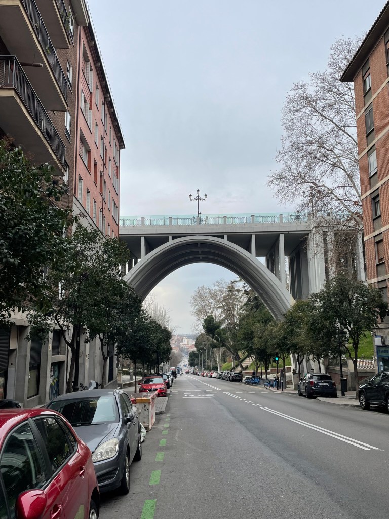 - The viaduct is so-called because it crosses Segovia street, a street that then crosses the Manzanares River on the Segovia bridge, but at no point does this road go to Segovia, or indeed even head in the general direction of Segovia. Segovia is out to the north-west of Madrid (and is well worth a visit), but this road quietly changes its name the second it gets across the river and bombs down to Extramadura, nowhere near Segovia. ↩︎
