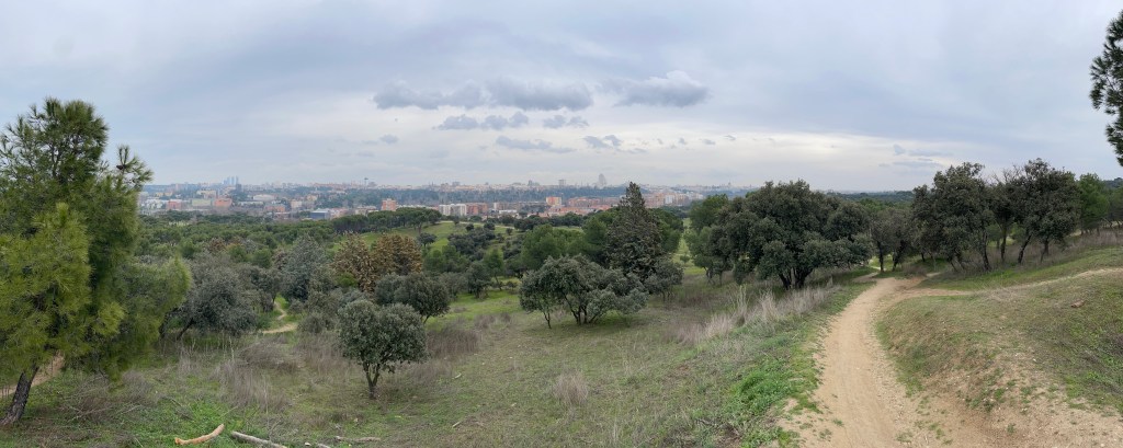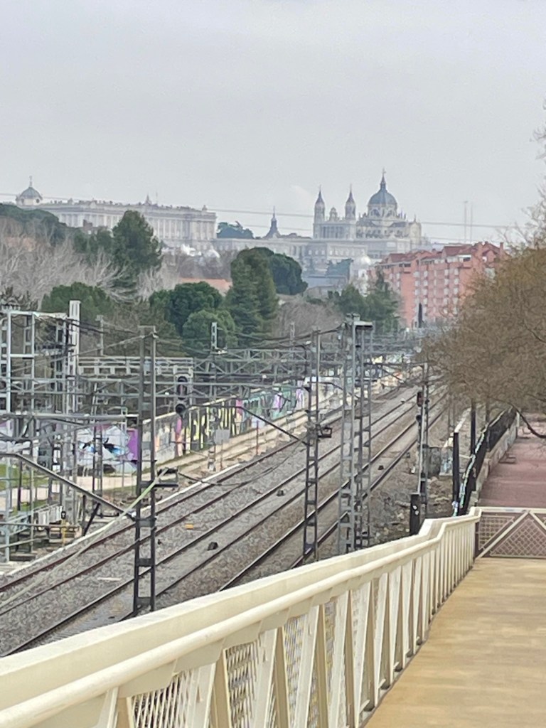 Our first walk from one side of the city to the other was a journey with a destination, and so it felt like an achievement when we’d done it. Motivation was fairly easy because the route had purpose … this one less so, we originally designed it as a circle, ending back at Atocha, but we cut it short to end at Madrid Río to be more realistic with time and distance. This was sensible, but for what we gained in sense, we lost in coherence, and it feels more artificial, like its end point is arbitrary. This means keeping going has been more of a struggle … so looking at the view, feeling on top of the world, our doubts are gone and we are feeling good about the whole thing again.