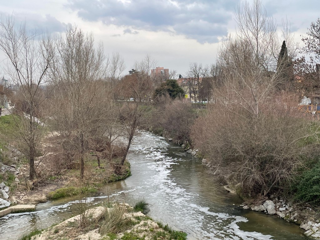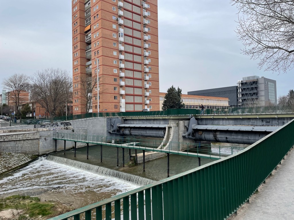 We head back on ourselves, and drop further down the valley to cross the railway lines – the commuter lines going into the manly-named Príncipe Pío Station – then across the little river that trickles through Madrid. It’s nice they have restored it to its natural state and flow (the old locks are still there, but left open), with its re-wilded shores and fish ladders, but a major capital like Madrid could do with a proper river running through it.