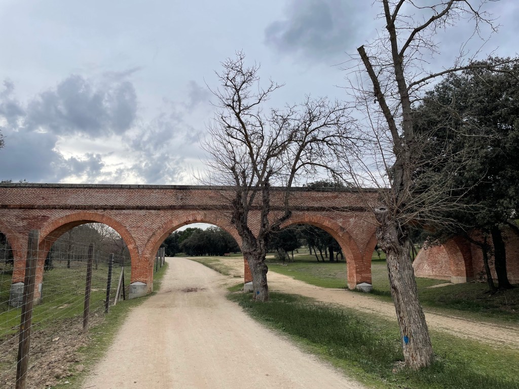 We carry on, down tiny paths that look like roads on Google but are little more than scratchy rabbit paths. We sit for a while, then are back on a proper track, under an aqueduct, the area to our left fenced off and full of sheep and rabbits. I wonder if there are wild boar here, there must be, they’re everywhere in Spain, so they must be here too. What do you do if you meet one? Are you supposed to look big and scary, or is that a brown bear? Or a black bear? Brown lay down, black fight back – is that right? Doesn’t matter, there are no bears here, although it’d be useful to know in case I get asked in a quiz question.