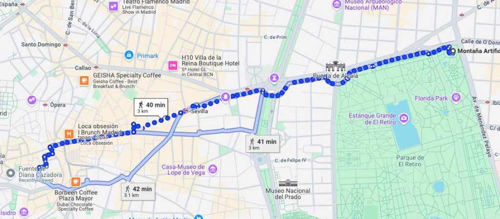 Today’s urban hike attempts to connect a few of these parks and gardens together – sticking to green spaces as much as possible in what we are calling The Madrid Central Garden Route, or, because that’s not a very good name, The Madrid Parks Trail (Central Division) … or maybe we’ll think of something better later because that’s also a crap name.