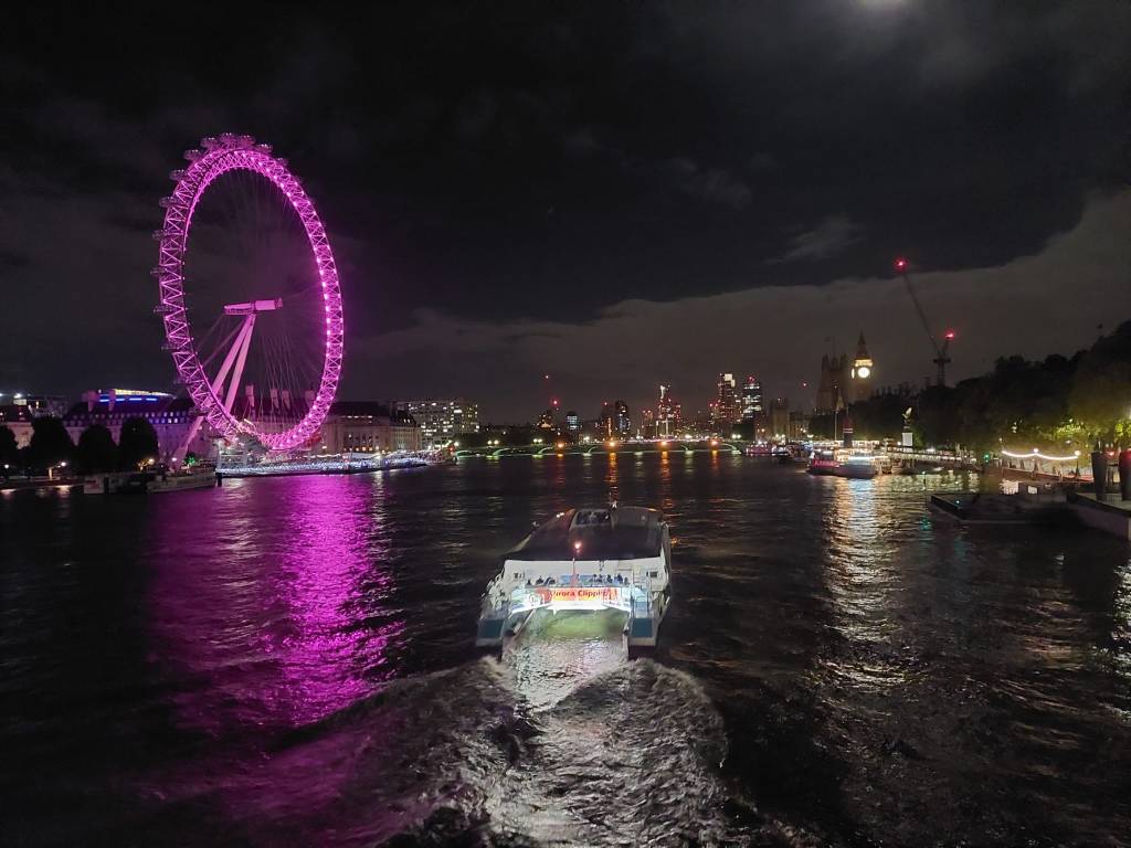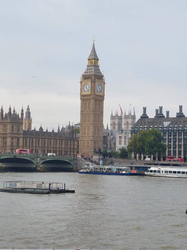 We drank some beer in a Peruvian place because it had available seating, then wandered off via Leicester Square to Chinatown where we ate on a large round table with a lazy Susan, most using knives and forks because Spanish people can’t use chopsticks. We then wearily walked back … but hang on, not yet, the night still being reasonably young, there was time for coffee and cream cakes in Ole and Steen … then, at last, the trudge to our hotel via one of the Golden Jubilee footbridges that run parallel to Hungerford Rail bridge, feeding the trains into Charing Cross Station. The upstream view from the westerly bridge toward the Eye and Parliament is lovely and we paused for photos – I often walk this way when I’m in London and always take a moment to appreciate it, feeling grateful to be is such a beautiful spot in this amazing city.