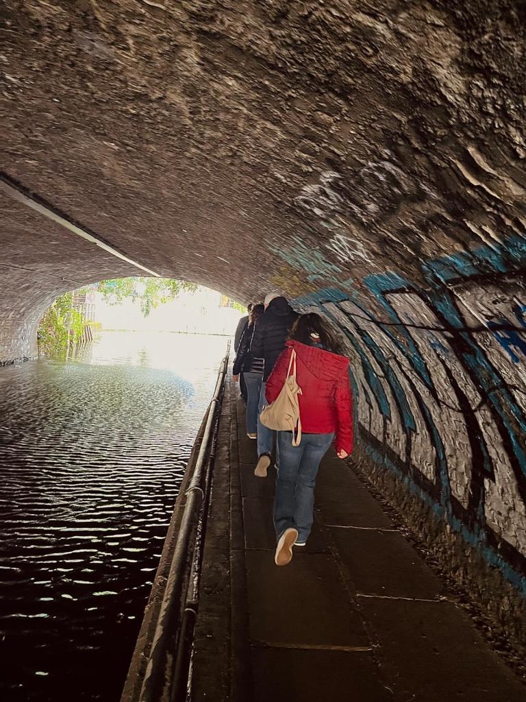 We left our hotel near Waterloo and cut down Lower Marsh, a nice busy street packed with restaurants and food stalls. It was too early for lunch, but we’d been up since 4am, so I suggested we get a snack to put us on, but groups struggle to make decisions, and whoever speaks first tends to speak for all because it’s so much easier to agree than to disagree – so we ploughed on, turning right into the Graffiti Tunnel (Leake Street Arches).