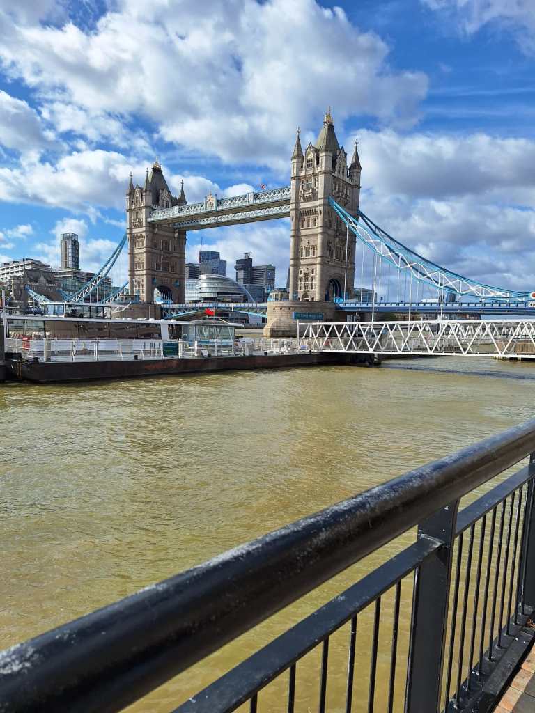 We walked down to the Tower of London, the sheer number of litter bins lined up outside was almost overwhelming, there were far more of them than there were Beefeaters and I insisted we take a group selfie by one of them to reinforce my point – I’m not saying we invented the bin or anything, but we do know how to throw litter away in England. We walked by the river, past the Traitor’s Gate, and across to St Katherine’s Dock to walk around and look at the boats. We crossed Tower Bridge and turned left to Butler’s Wharf to have a beer in The Chop House, sitting under heaters outside, the stunning view of the bridge framing the cluster of skyscrapers of The City.