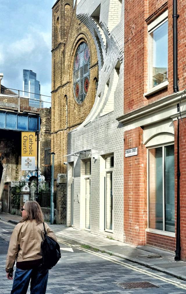Walking back down Southwark Street, through the cool Flatiron district (I could live here, I thought, checking out the buildings for the most suitable apartment for my imaginary future), we ducked down O’Meara Street and I explained how the odd architecture of the building next to the church, viewed from the end of the road, allowed passers-by to see the lovely round window.