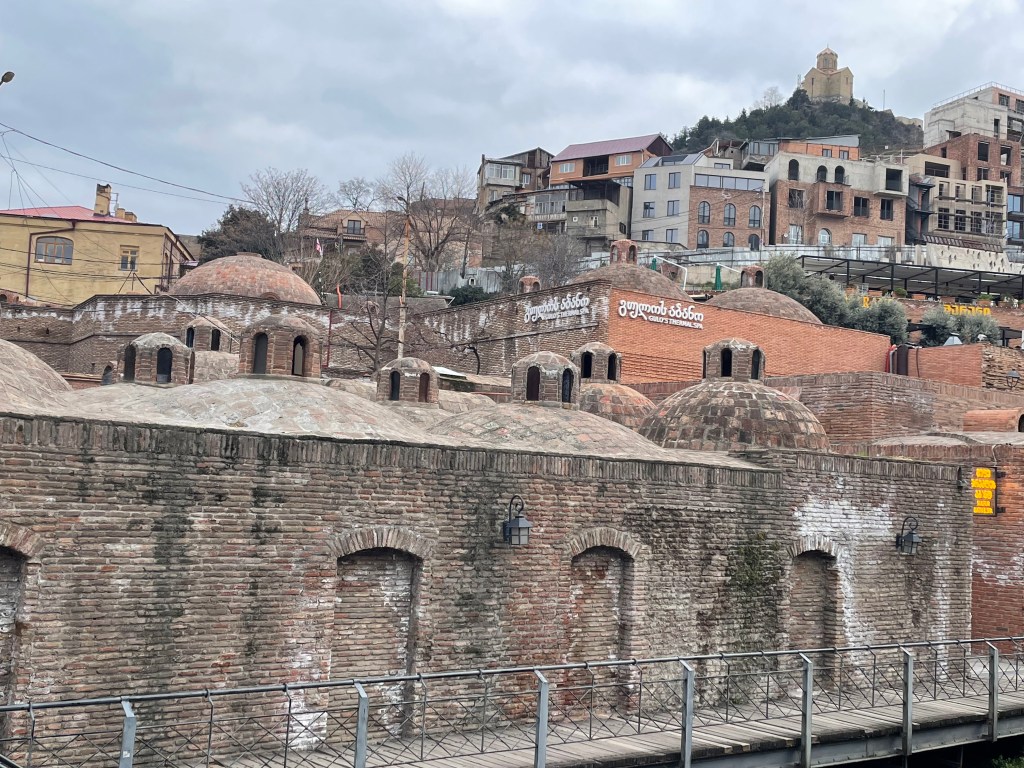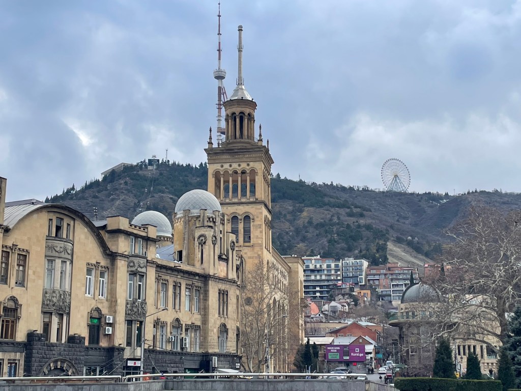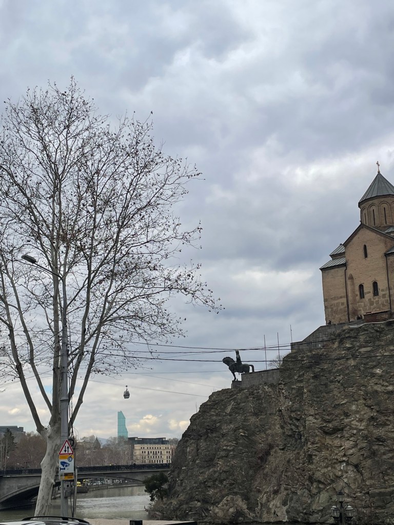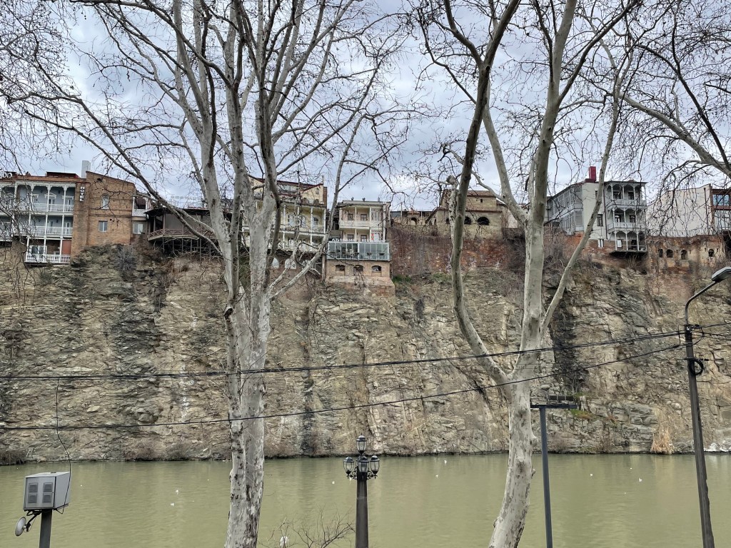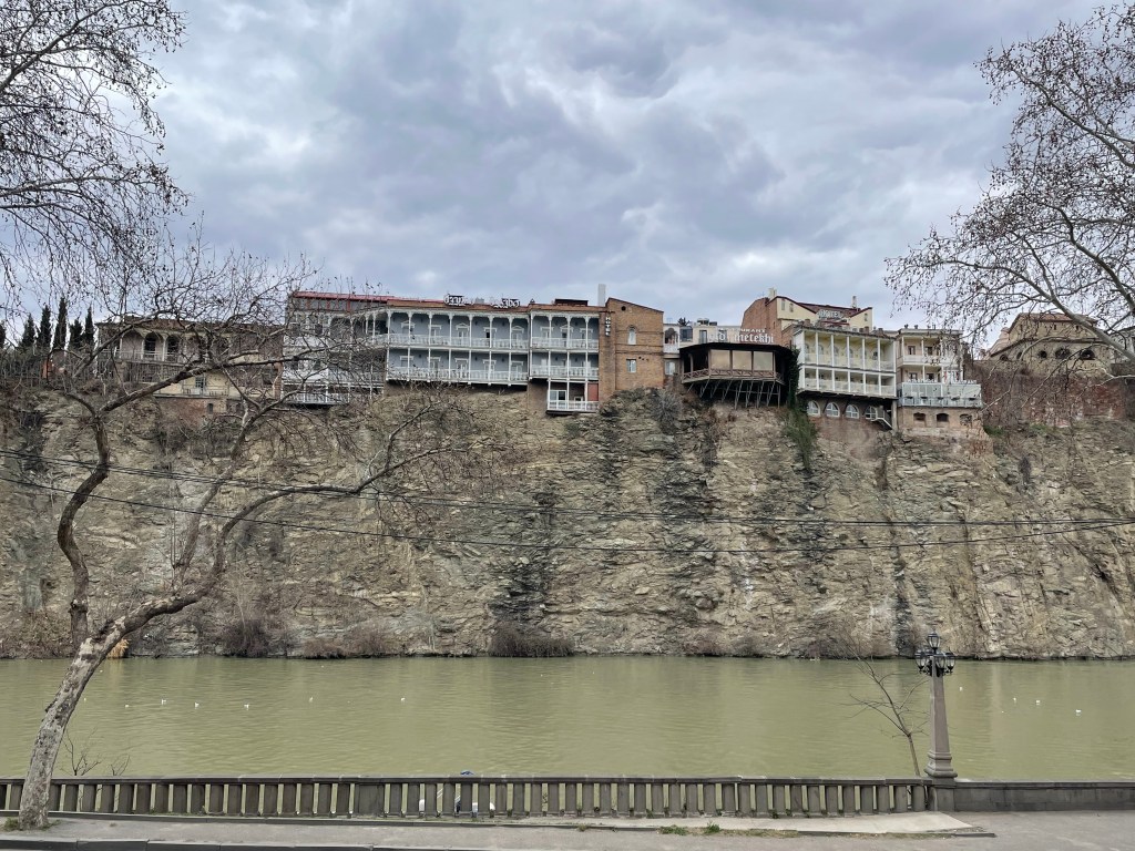 Tbilis sits in the valley of the Mtkvari River (also known as Kura River in Russian) that rises in Eastern Turkey, and then runs down central Georgia until it enters Azerbaijan and eventually the Caspian Sea. I feel sorry for rivers that don’t make it to the proper sea, instead emptying into a massive lake with evapouration the only route out. This is better than some, the Chirchiq in Tashkent (see here) joins the Syr Darya then barely even limps to the landlocked Aral Sea, being soaked up by irrigation as it nears its end, so I guess it could be worse.