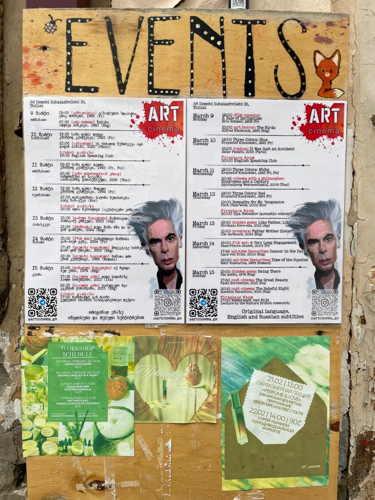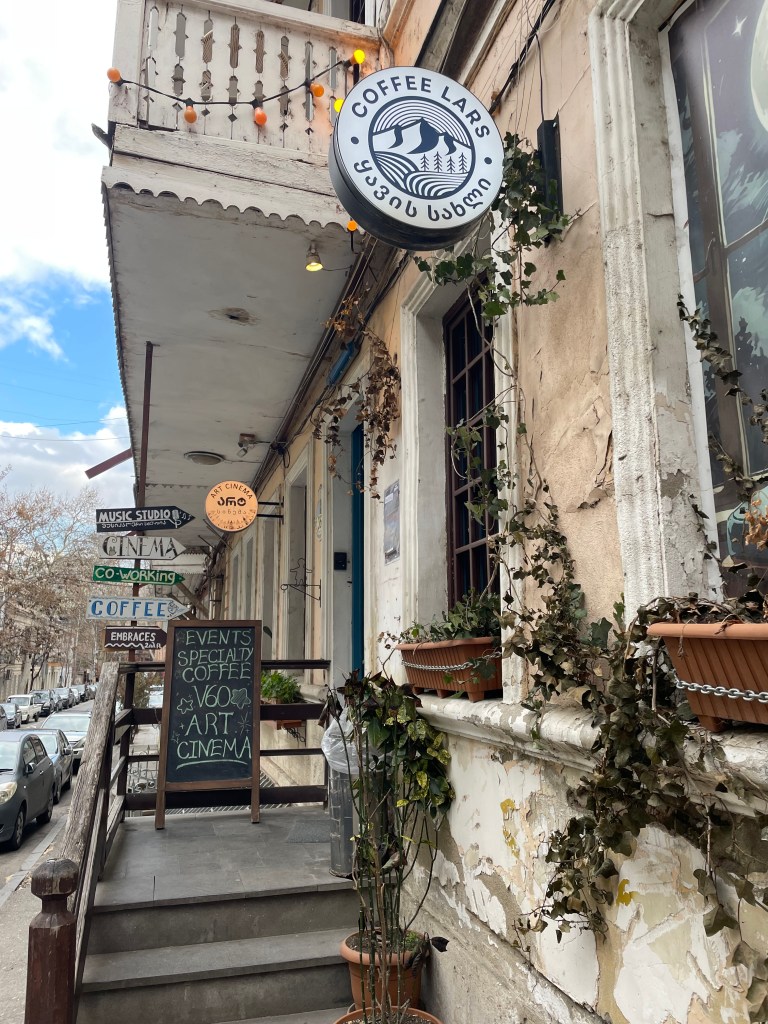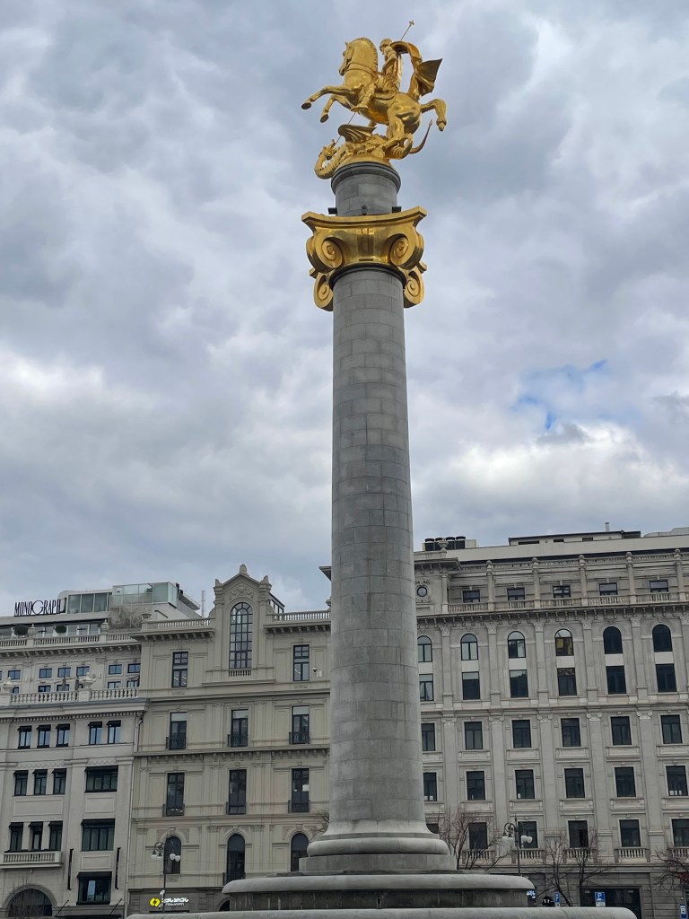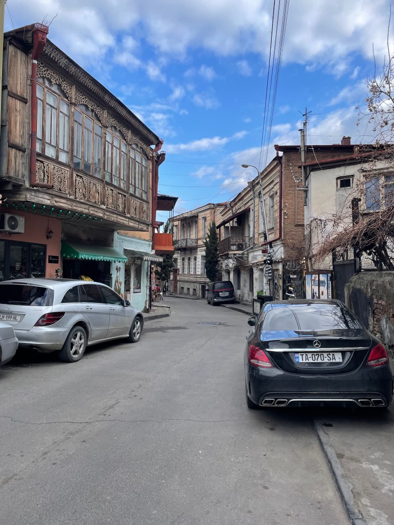 On my last day I think about getting the bus up to the airport. It involves changing buses at a stop a couple of miles away, but seems fairly straightforward … but I worry everything will be in Georgian script, and I don’t know how to pay, and – because I like to get early for flights – I worry the buses showing on Google Maps won’t really be there at the times they say and I might then be late, and I need to ask at check-in about getting an aisle seat because it’s a long way back to Madrid … I make my choice and bottle out, and lazily order a taxi. I sigh, this is a bit too easy and comfortable, too anoydyne and anonymous – apart from the hotel stray dog barking at me one last time as the taxi pulls away, this could be anywhere. I should have got the bus, I think, and remind myself that this blog isn’t going to be much cop if it’s just a middle-aged man complaining about stuff in the back of an Uber.