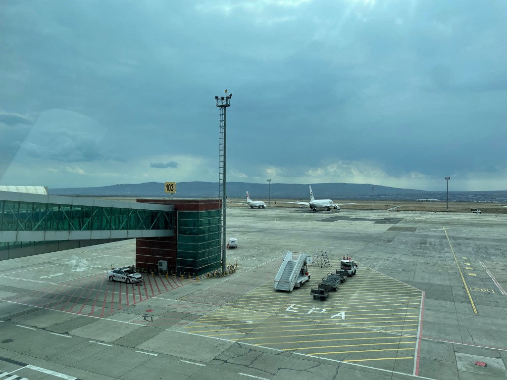 We get to Istanbul on time, and as has become the rule, we dock at the gate furthest from my connecting flight. We arrive on A-something, my flight to Tbilisi leaves from F-something … oh well, at least I’m going to do my daily steps …