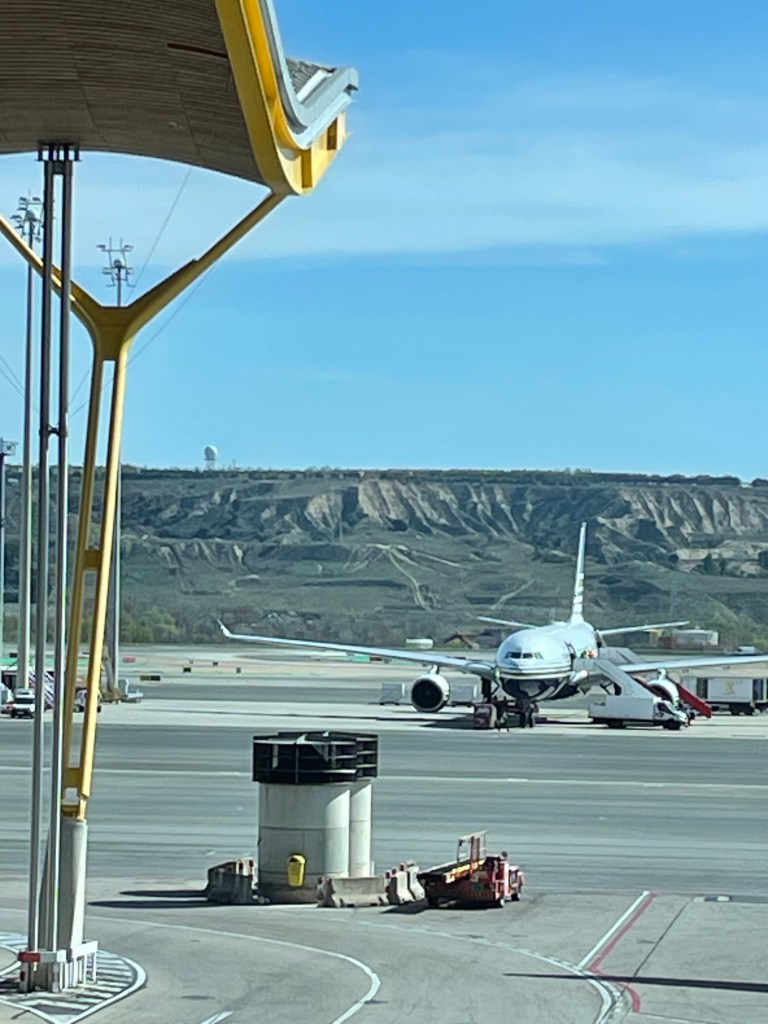 I’m on the silly train carrying passengers from Madrid’s Terminal 4 to the Satellite. I hate it. It’s laborious and time-consuming, and even more annoying for Arrivals when you wearily stumble off a flight, thinking it’s all over and you’re almost home, only to be hit with this extra step: it is my secret hell. I stand near the exit doors as it jerks around, shuttling us through the tunnel, a two-kilometre ride from the main terminal to a bunch of extra gates. After what feels like a long time (it isn’t really), it pulls to a stop and the doors swoosh open.