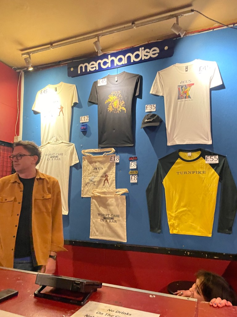 I didn’t want to just up and leave because that would mean accepting it had ended, and I wasn’t ready for that. This hadn’t just been another cluster of moments that I got to live through like any other … like emptying the dishwasher or getting the train into town … it had been something else, something emotional and extraordinary, something that couldn’t just end, willy-nilly, and then be gone for ever … it couldn’t … I was in the denial phase of grief and had to be dragged away from the now empty theatre. We sauntered up to the merch stall to gasp at the prices of the t-shirts and hang around a bit longer, dragging out the inevitable exit … although we didn’t know it then, we later found out the band had come out to sign merchandise but we’d missed them because we’d been jibbering and dithering at the front of the stage, although that’s probably for the best because my clunky attempts at starstruck humour haven’t worked brilliantly in the past …