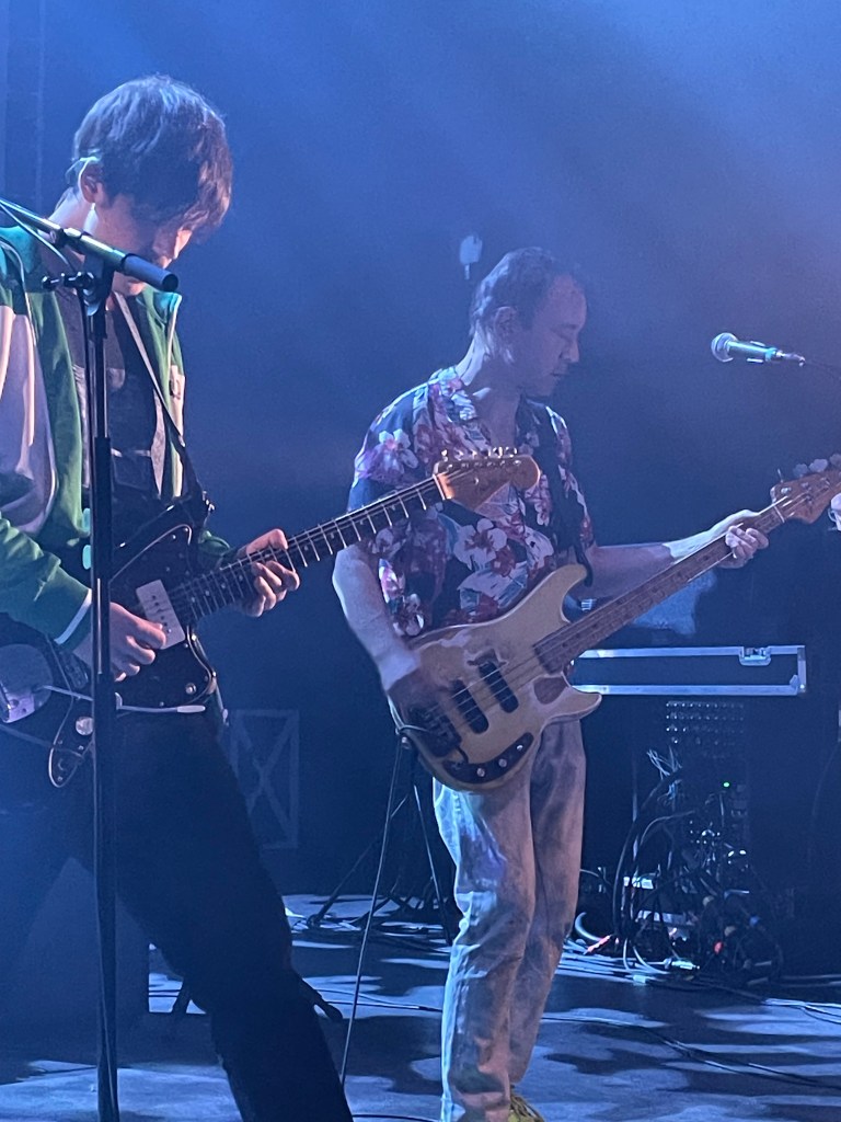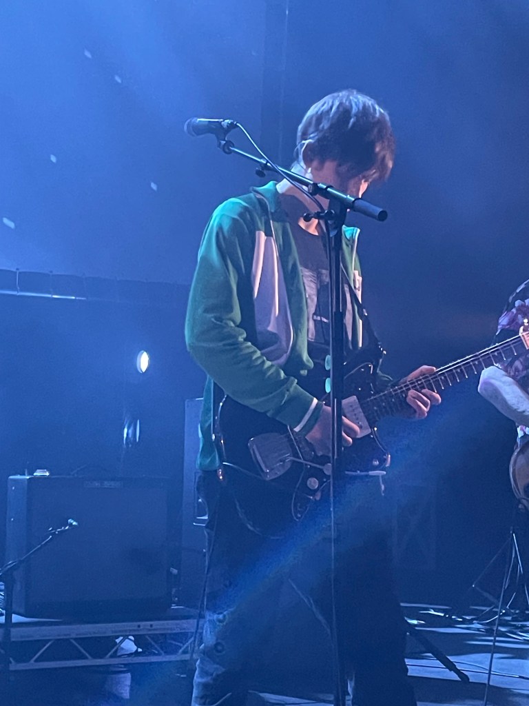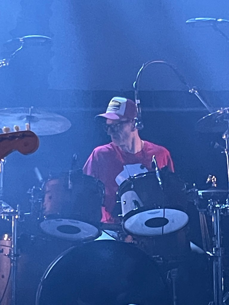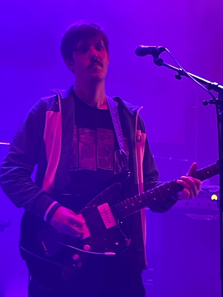 We get in, and they bag spots on the front row and I squeeze in, roughly in front of the gap between where Tom and Simen will stand. They always stand in the same place and always (apart from Stéphane on drums) stand in a line across the front.